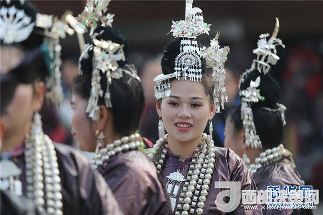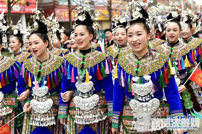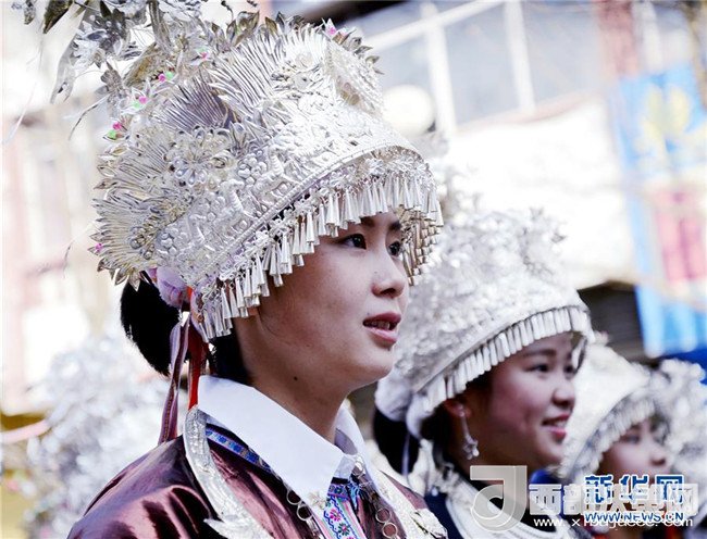 12月18日,身著盛裝的侗族同胞參加巡游。當(dāng)日,2017中國(guó)侗年暨第八屆黎平·中國(guó)侗文化旅游節(jié)“非遺”文化巡游在貴州省黔東南苗族侗族自治州黎平縣舉行,當(dāng)?shù)囟弊逋麣g聚一堂,喜迎侗年到來(lái)。(林世禎 攝)