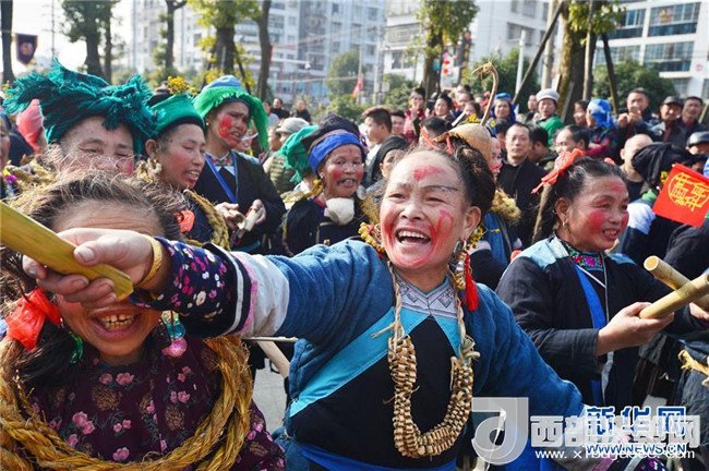 12月18日,身著盛裝的侗族同胞參加巡游。當(dāng)日,2017中國(guó)侗年暨第八屆黎平·中國(guó)侗文化旅游節(jié)“非遺”文化巡游在貴州省黔東南苗族侗族自治州黎平縣舉行,當(dāng)?shù)囟弊逋麣g聚一堂,喜迎侗年到來(lái)。(寧堅(jiān) 攝)