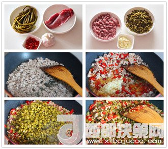 第一步:準(zhǔn)備食材。豬瘦肉餡適量、豆角適量、碎米芽菜一包。干辣椒適量、蒜適量。