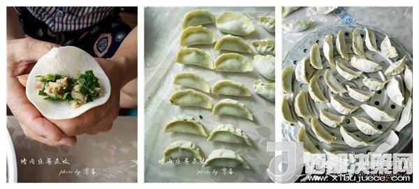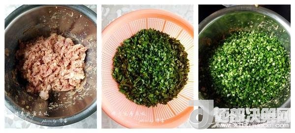 原料:豬肉餡550g,韭菜450g,餃子皮1250g。