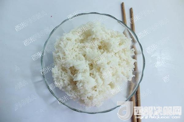 米飯熟了后,立刻打散晾涼,最好是隔夜的,因為經(jīng)過了一個晚上,米飯里面的水份已被蒸發(fā)的差不多,這個時候炒米飯,就不會結(jié)成團。而是粒粒分明。如果是用的厚厚的鐵板旺火快炒,就能發(fā)現(xiàn)飯粒在鐵板上跳動。