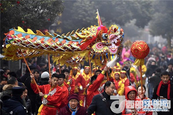 當(dāng)日,2018好客山東賀年會(huì)暨臺(tái)兒莊古城開(kāi)福門迎新年儀式在臺(tái)兒莊古城舉行。百獅賀歲、火龍鋼花、社火巡游、花燈祈福等民俗文化展演精彩紛呈,吸引了大批游客。