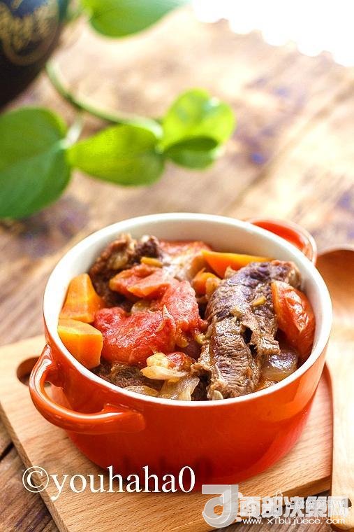 食材:牛腩500克,西紅柿800克,洋蔥一個,胡蘿卜一個,紅酒100克,鹽8克,植物油2湯匙。