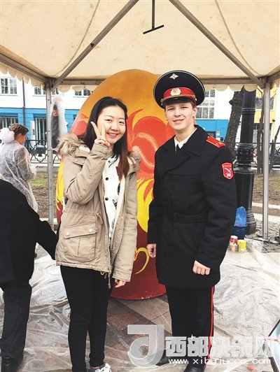 在俄羅斯的節(jié)日慶典活動(dòng)中,姜若晨(左一)與當(dāng)?shù)剀娦W(xué)生的合影。在她看來(lái),學(xué)子與外國(guó)朋友的交往過(guò)程中要注重自身形象,傳遞中國(guó)微笑。