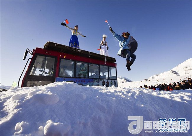 在新疆喀納斯禾木村舉辦的潑雪節(jié)上,當?shù)鼐用裨跒橛慰捅硌萏?月1日攝)。記者 趙戈 攝