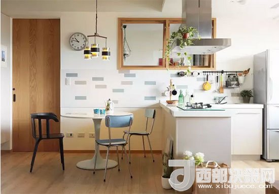 客餐廚一體,沒(méi)有了隔斷小空間一下變大,視線(xiàn)也變得十分通透。
