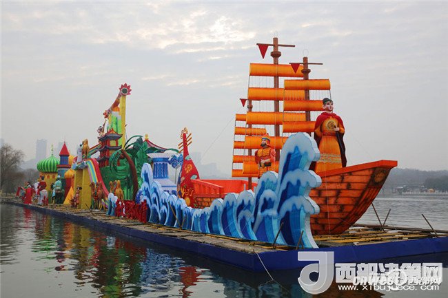 1月22日,記者走進(jìn)大唐芙蓉園,環(huán)芙蓉湖一圈,見2018新春燈會(huì)的大型燈組已基本到位,規(guī)模氣勢(shì)超大唐芙蓉園歷屆燈會(huì)。這組水上燈組濃縮了水陸絲綢之路風(fēng)情。