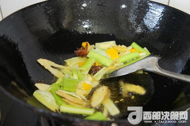 12.小火燒制5分鐘,挑出所有的調(diào)料