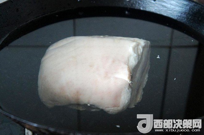 4.將五花肉過(guò)水焯一遍后,瀝干