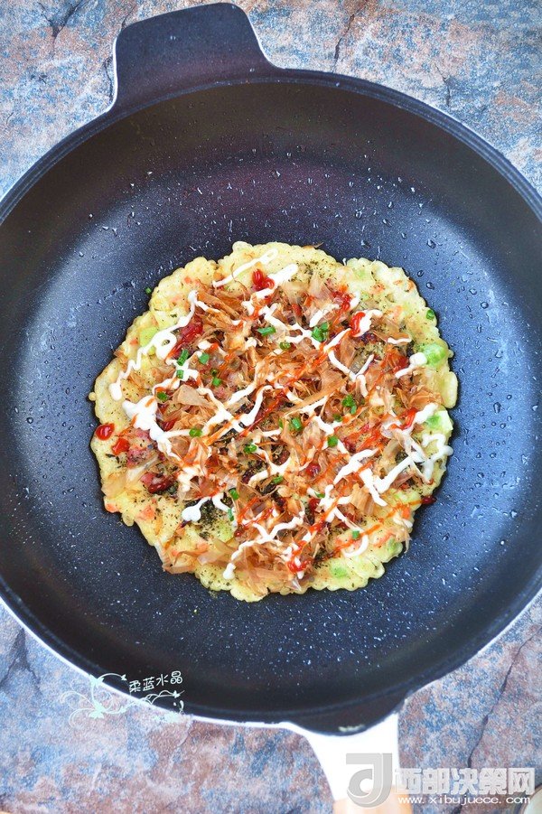 “大阪燒是一種日式蔬菜煎餅,有些地區(qū)根據(jù)日文漢字的寫法,也叫做“御好燒”,為日本關西的一種民間美食,也是大阪飲食文化的代表。由于外觀的關系,也有人稱大阪燒為“日本式比薩餅”,可以說放上去的食材,并沒有特殊規(guī)定,一般是自己想吃什么就放什么。吃膩了中式的雞蛋薄餅,換個口味也別俱一格。做這個頂重要的是,一定要用不粘鍋,不然想翻面的時候,底部巴鍋底不動,而且還容易上面的沒熟,下面的已經(jīng)糊了。”