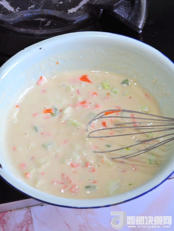 4.調成均勻的面糊,不要太稀,如酸奶般的稠度。如果口味重可以加點鹽。
