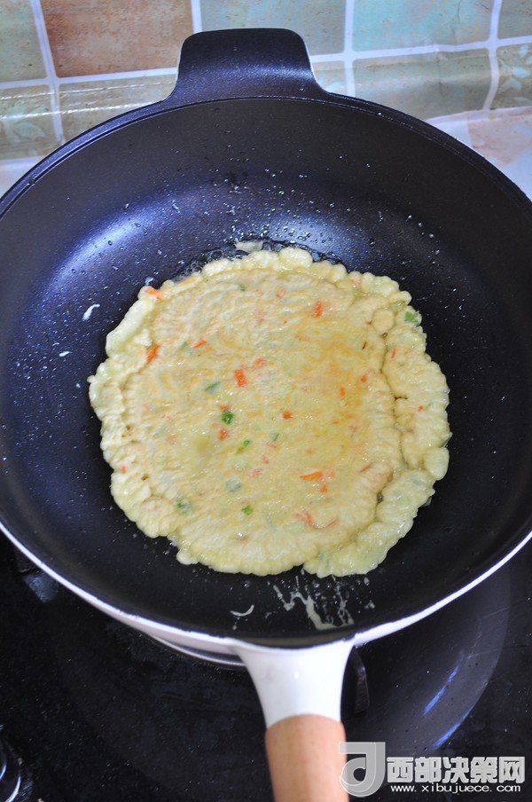 主料:胡蘿卜 10克 青椒 10克 培根 1片 雞蛋 50克 包菜 10克 面粉 40克