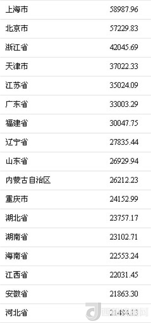 記者梳理發(fā)現(xiàn),上海、北京、浙江、天津、江蘇、廣東、福建、遼寧、山東、內(nèi)蒙古2017年居民人均可支配收入超過了全國平均水平。