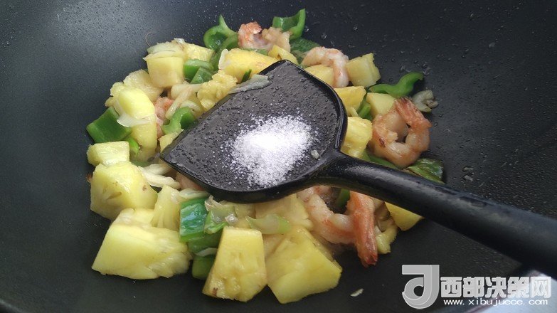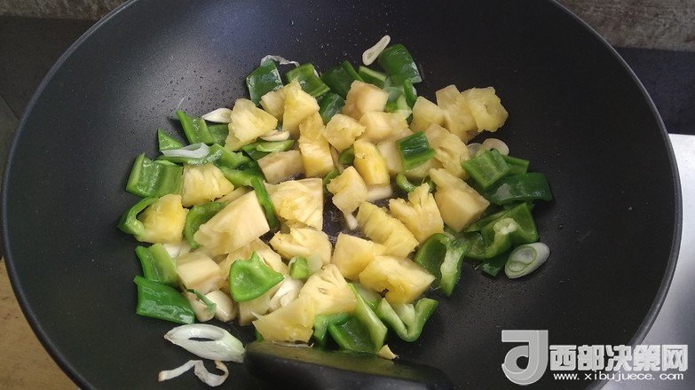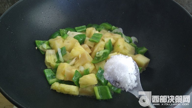 8.倒入菠蘿翻炒