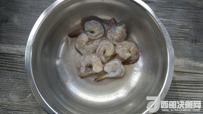 2.蝦去殼去蝦線清理干凈用料酒,胡椒粉腌制一下