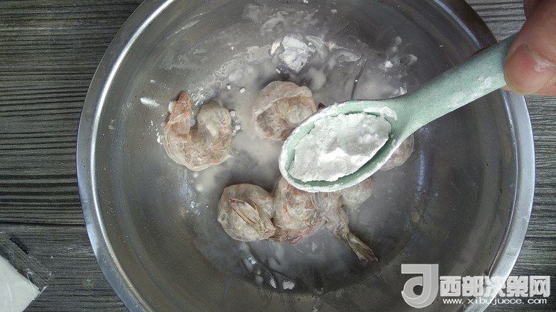 4.蝦仁瀝干水分加入淀粉拌勻