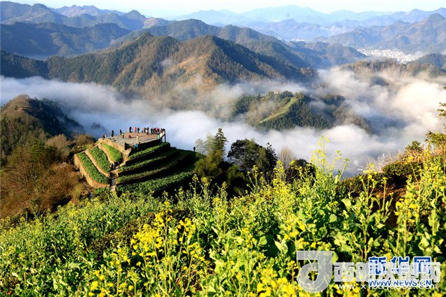 當(dāng)日,陽光燦爛,氣溫回升,安徽省黃山市歙縣境內(nèi)的石潭村、山水畫廓新安江、大洲源等地種植的油菜花陸續(xù)盛開,吸引著全國各地的游客到此觀光旅游。新華網(wǎng)發(fā)(潘成 攝)