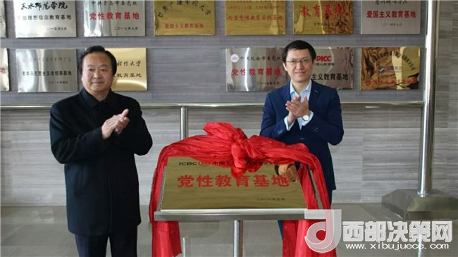 兩當兵變紀念館館長王廷君,中國工商銀行甘肅省分行黨委委員、副行長鄭允弢為“黨性教育基地”揭牌。