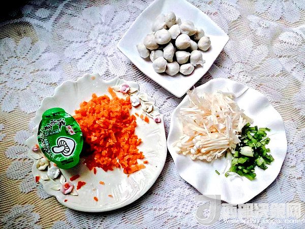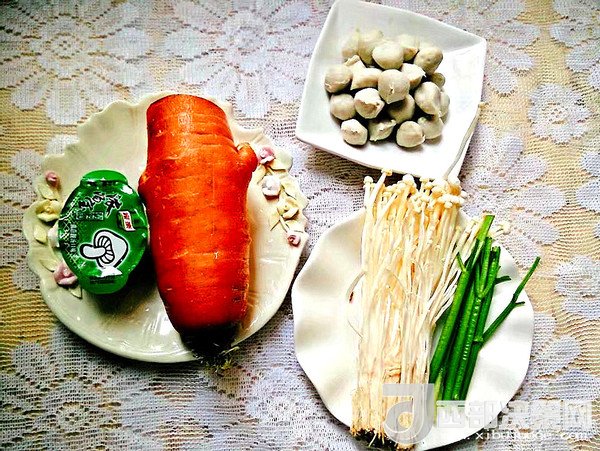 主料:胡蘿卜 半個(gè)   金針菇 60克   肉丸 50克   蔥 少許