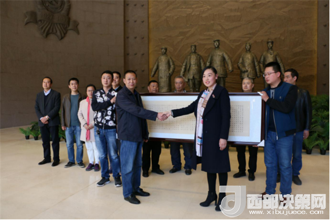 西部決策網(wǎng)——西部大開(kāi)發(fā)訊(帥華鋒 通訊員 柴金霞 陳彥榮)“三月的南梁,大地處處蕩漾著春的漣漪.....”在這生機(jī)勃勃、春意盎然的美好時(shí)節(jié),中國(guó)書(shū)法家協(xié)會(huì)會(huì)員、首屆《世界華人運(yùn)動(dòng)大會(huì)書(shū)畫(huà)展》楷書(shū)評(píng)委、清心齋主人趙倉(cāng)老師一行,帶著對(duì)革命老區(qū)的深情厚誼和對(duì)劉志丹、謝子長(zhǎng)、習(xí)仲勛等革命先輩舍生忘死、救民出水火的崇敬之意來(lái)到革命圣地——南梁,向紀(jì)念館捐贈(zèng)書(shū)法作品《長(zhǎng)恨歌·習(xí)仲勛》。本作品系趙倉(cāng)老師艱辛創(chuàng)作的佳品力作,飽含了趙倉(cāng)老師豐厚的文化內(nèi)涵,真實(shí)再現(xiàn)了習(xí)仲勛老人不畏艱難、矢志堅(jiān)守的人生壯麗詩(shī)篇。