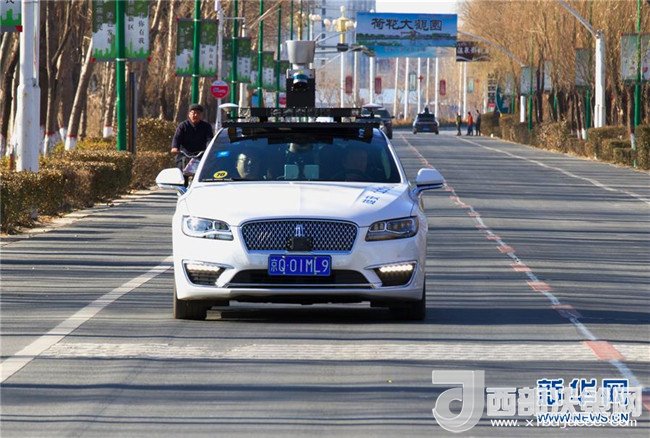 一輛百度Apollo自動(dòng)駕駛車輛在雄安新區(qū)進(jìn)行載人路測(cè)(2017年12月20日攝)。新華社記者 楊世堯 攝