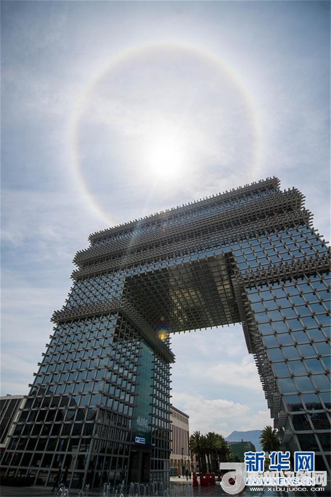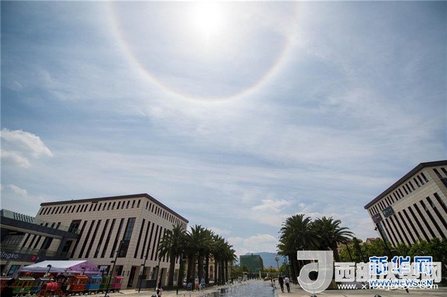當日中午,云南省昆明市上空出現(xiàn)日暈景觀。記者胡超攝