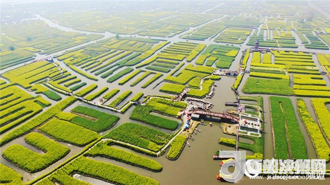 泰州興化的油菜花,以千島樣式形成的垛田景觀享譽(yù)全國(guó)。傳說垛田是當(dāng)年泰州知州岳飛大戰(zhàn)金兵擺設(shè)的八卦陣,每當(dāng)清明前后,油菜花開,藍(lán)天、碧水、“金島”織就了“河有萬灣多碧水,田無一垛不黃花”的奇麗畫卷,吸引了眾多海內(nèi)外游客前來觀光。(耿志超)