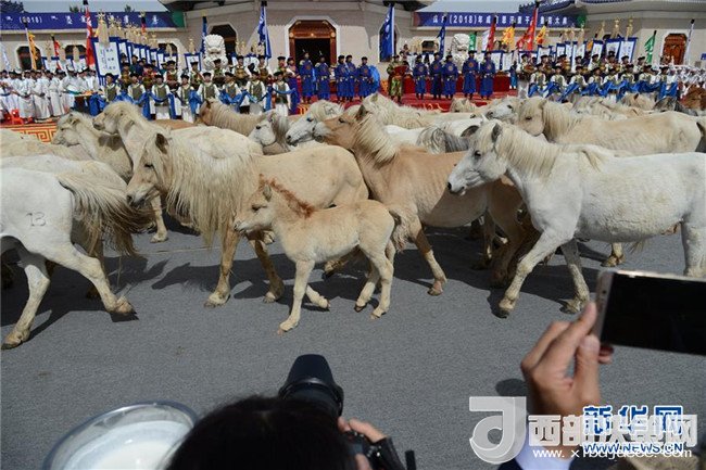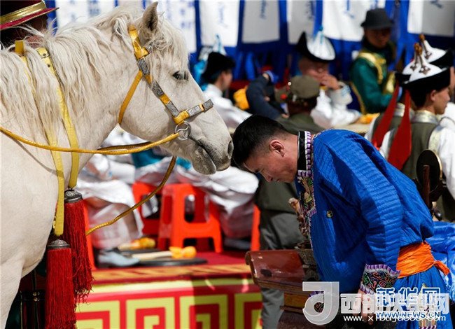 這是在成吉思汗陵春季大祭現(xiàn)場拍攝的白馬(5月6日攝)。新華社記者 鄒予 攝