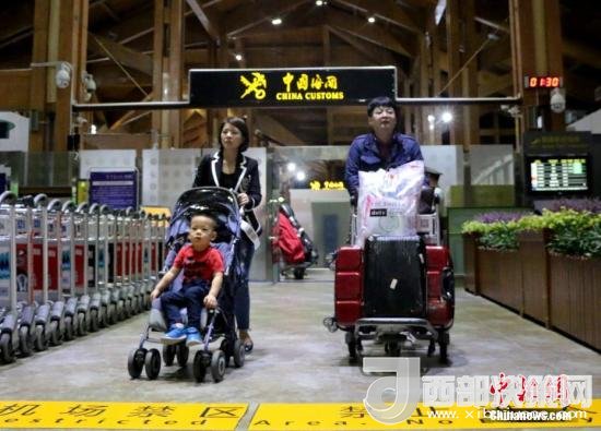 海南今年5月1日起實(shí)施59國(guó)人員入境旅游免簽政策,圖為當(dāng)日首批免簽游客抵三亞。王曉斌 攝