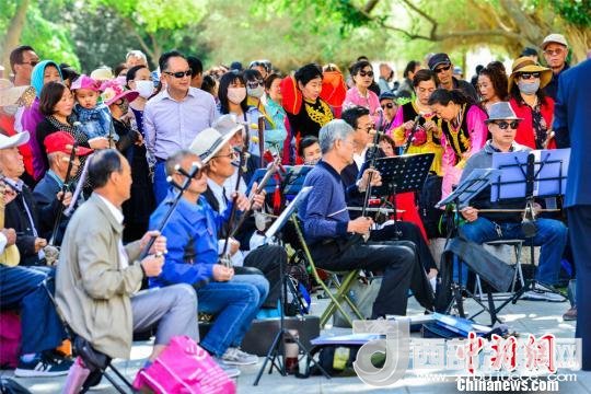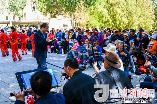 圖為敦煌市沙州樂園民族歌舞團在莫高窟前表演敦煌民間戲曲。 王斌銀 攝