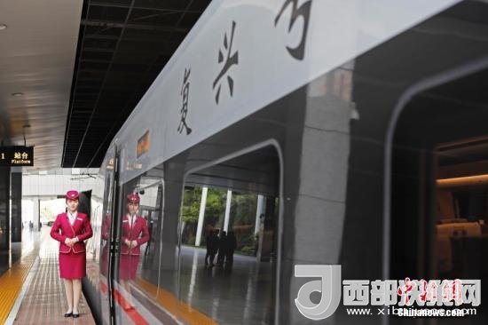 列車員在“復興號”列車旁迎接旅客的到來。 中新社記者 殷立勤 攝