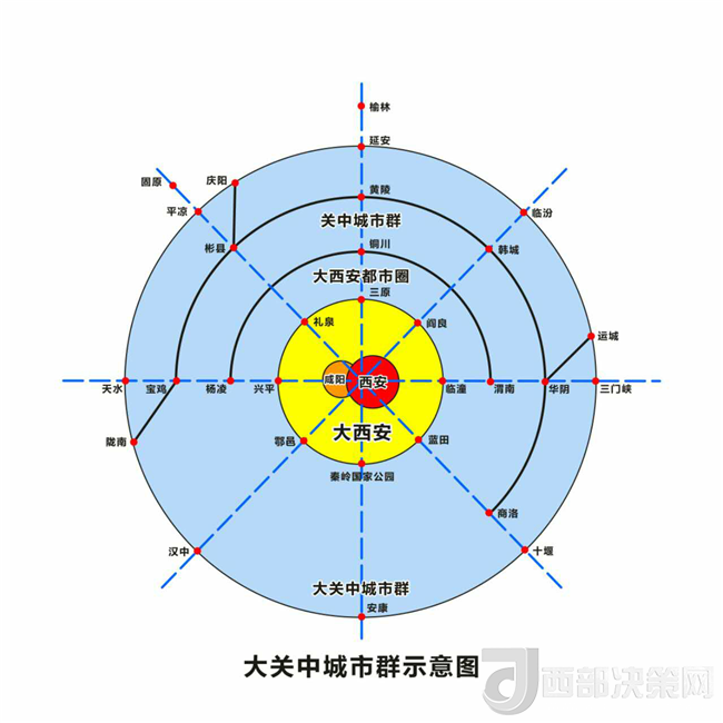 為研究大西安為中心的大關(guān)中城市群,我們先后赴河南、四川、安徽、浙江做了廣泛調(diào)研,并與咸陽市、西咸新區(qū)、西安市和省上相關(guān)部門做了深入探討,提出構(gòu)建大西安為中心的大關(guān)中城市群設想。