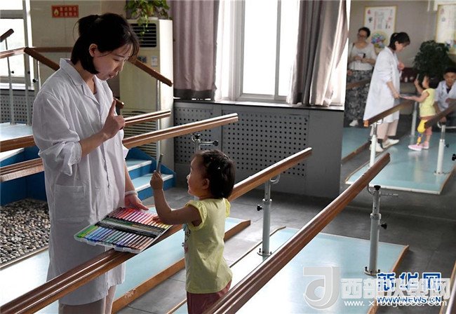 5月29日,笑笑在康復(fù)室里借助器械練習(xí)單腿站立和跳躍,增強(qiáng)腿部肌肉力量和協(xié)調(diào)性。