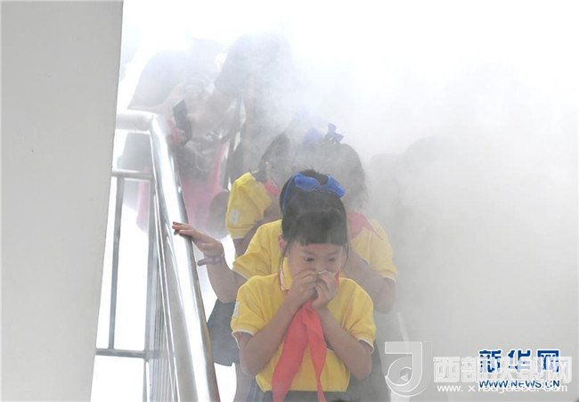 6月2日,孩子和家長們在廣西南寧市青秀區(qū)公安消防大隊柳沙中隊參加消防疏散演習(xí)。