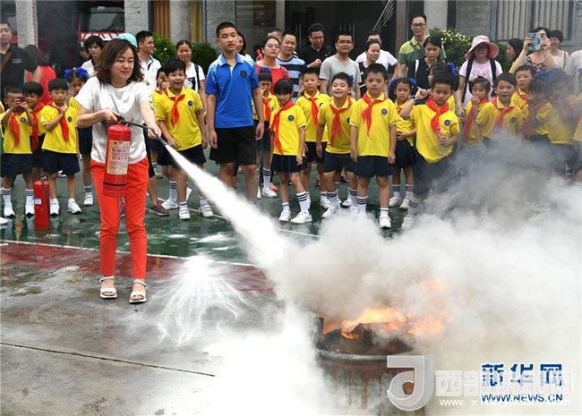 當(dāng)日,數(shù)十名來自廣西南寧市濱湖路小學(xué)的孩子們和家長一起走進(jìn)青秀區(qū)公安消防大隊柳沙中隊,參加消防疏散演習(xí)、參觀消防車、了解消防設(shè)備設(shè)施用途,在親子活動中學(xué)習(xí)消防知識。新華社記者 周華 攝