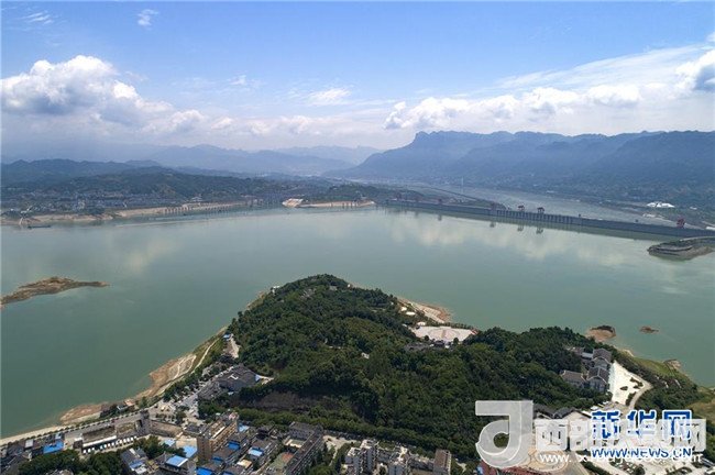 這是6月1日拍攝的三峽大壩,昔日淹沒水下的秭歸縣木魚島又露出水面。