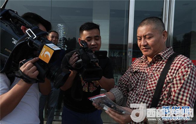 6月7日,梁實(shí)(右一)在2018年高考成都通錦中學(xué)考點(diǎn),接受媒體采訪。新華社記者 江宏景攝
