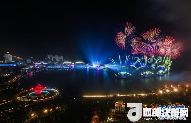 6月9日至10日,上海合作組織青島峰會在山東青島召開。這是6月9日晚在青島舉行的《有朋自遠(yuǎn)方來》燈光焰火藝術(shù)表演。新華社記者 徐昱 攝