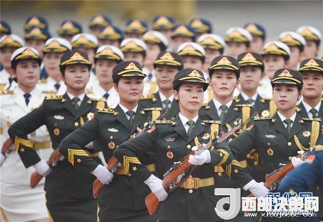 6月6日下午,國家主席習(xí)近平在人民大會堂東門外廣場舉行儀式,歡迎吉爾吉斯斯坦總統(tǒng)熱恩別科夫?qū)χ袊M(jìn)行國事訪問。這是在歡迎儀式上首次增加的三軍儀仗隊女兵方陣。新華社記者 陳曄華 攝