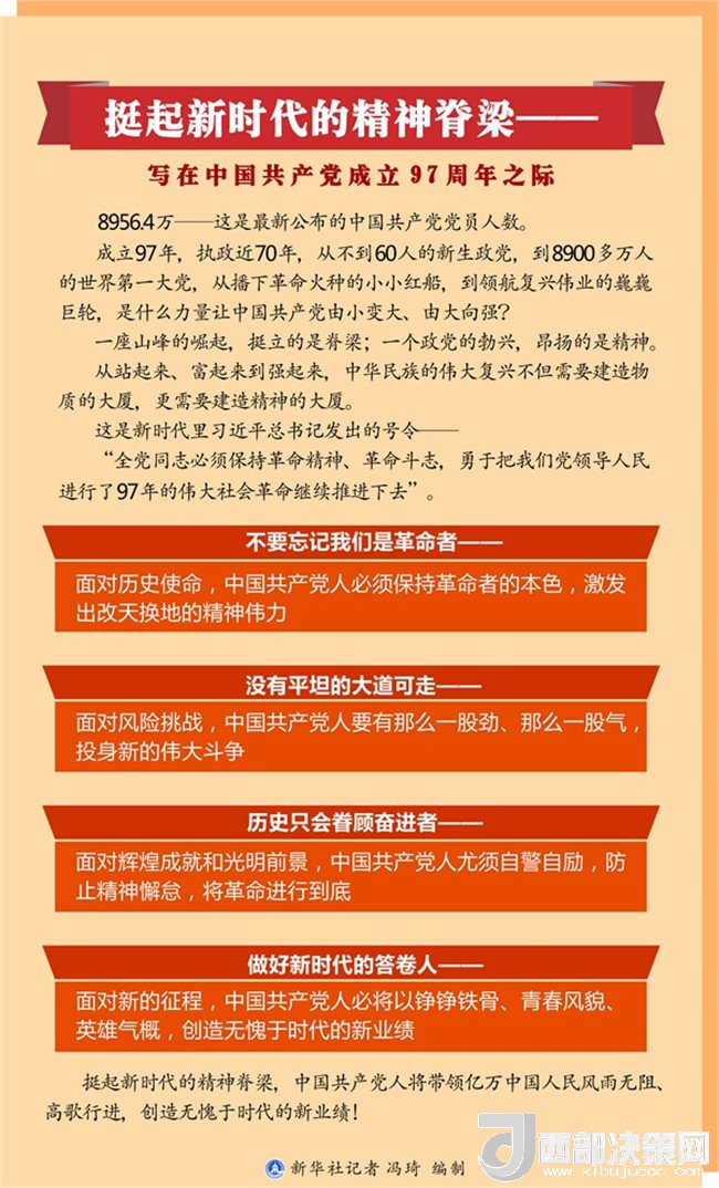 挺起新時(shí)代的精神脊梁,中國共產(chǎn)黨人將帶領(lǐng)億萬中國人民風(fēng)雨無阻、高歌行進(jìn),創(chuàng)造無愧于時(shí)代的新業(yè)績?。ㄓ浾撸黑w承、詹勇、張曉松、謝良、周文林、陳煒偉、朱基釵、吳晶、姜瀟、王卓倫、榮啟涵)