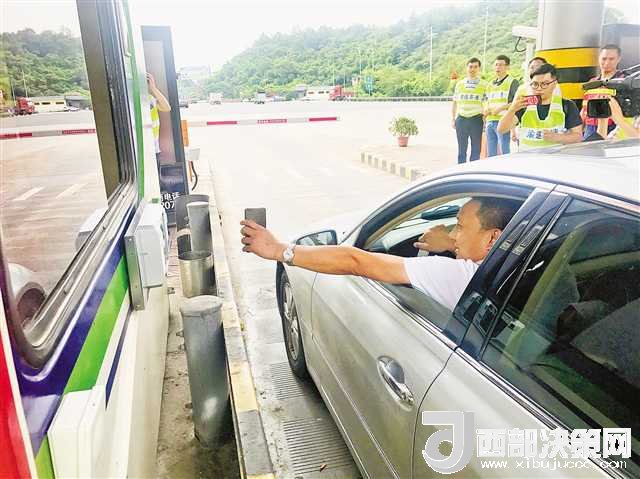 七月二日,渝遂高速沙坪壩站,司機(jī)用手機(jī)掃碼支付通行費(fèi)。重慶日報(bào)記者 楊永芹 攝