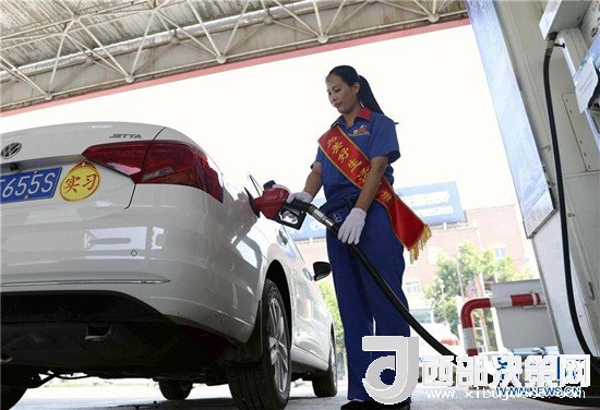 7月23日,河北省任縣一家加油站工作人員在給車輛加油。