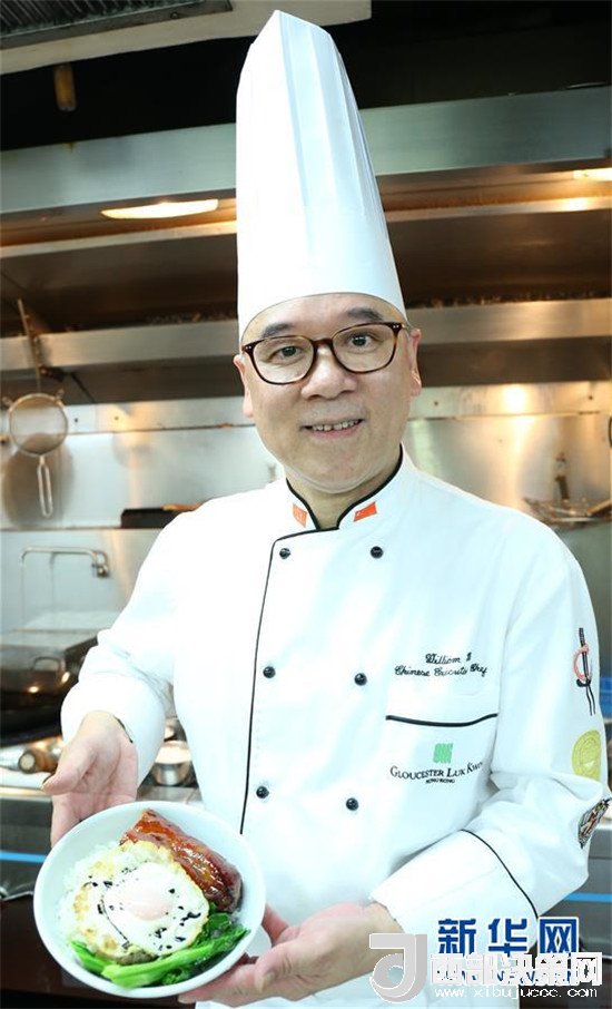 在香港六國(guó)酒店,香港中廚師協(xié)會(huì)會(huì)長(zhǎng)馬榮德向記者展示他剛剛制作的“黯然銷魂飯”(6月14日攝)。新華社記者 萬后德 攝