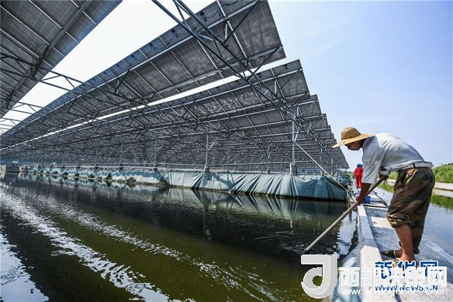 該項(xiàng)目建設(shè)在1800畝魚塘上,形成了板上發(fā)電、板下養(yǎng)魚的獨(dú)特景觀,項(xiàng)目裝機(jī)容量60兆瓦,所發(fā)電量全部并入電網(wǎng)。 近年來,浙江省湖州市大力實(shí)施能源項(xiàng)目,以太陽能、水能、風(fēng)能等清潔能源替代化石能源,因地制宜實(shí)施農(nóng)光互補(bǔ)、漁光互補(bǔ)、林光互補(bǔ),不僅形成了一條集光伏發(fā)電、農(nóng)業(yè)種植、漁業(yè)養(yǎng)殖、林業(yè)休閑、旅游觀光于一體的生態(tài)旅游農(nóng)業(yè)光伏產(chǎn)業(yè)鏈,更有效推動(dòng)了能源結(jié)構(gòu)的持續(xù)優(yōu)化,為湖州生態(tài)文明建設(shè)注入綠色動(dòng)能。截至2018年6月底,湖州市新能源發(fā)電裝機(jī)達(dá)到145萬千瓦,比2017年同期增長40%;2018年上半年累計(jì)新能源發(fā)電量8.59億千瓦時(shí),同比增長51%,相當(dāng)于減少煤炭使用量約34.7萬噸,減少二氧化碳排放約85.64萬噸。新華社記者 徐昱 攝