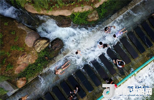 炎炎夏日,柳州市區(qū)柳江沿岸的人工瀑布群每天定時(shí)開放,為市民送去清涼。新華社發(fā)(黎寒池 攝)