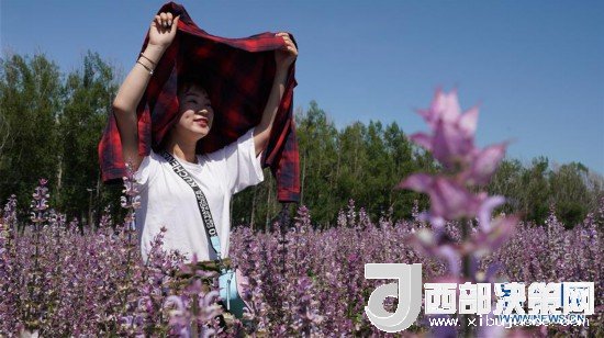 8月1日,游客在新疆昭蘇縣一處香紫蘇花海景區(qū)拍照留影。 新華社發(fā)(李夢嬌攝)