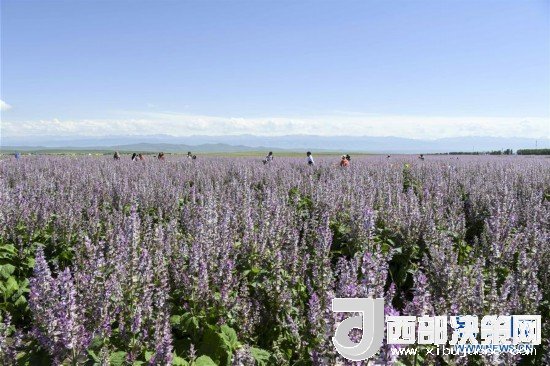 8月1日,在新疆昭蘇縣的一處香紫蘇花海景區(qū),當?shù)卮迕駨埿惴加盟崮谈泶裾泻粲慰汀?新華社記者胡虎虎攝