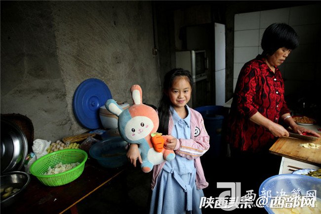 10歲的李蓉也能幫奶奶干些活,幫奶奶洗好菜,奶奶做飯的時(shí)候,看著也沒(méi)有自己能干的,李蓉便抱個(gè)布娃娃玩耍。