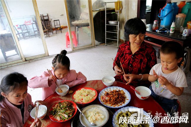 陳遠(yuǎn)太的老伴去山上干活去了,中午回不了家吃飯,陳遠(yuǎn)太便招呼孫女、孫子吃中午飯,小家伙們?nèi)偷贸院茫荒茏屗麄凁I著。孩子的父母都不在家,做奶奶的更心疼孩子。