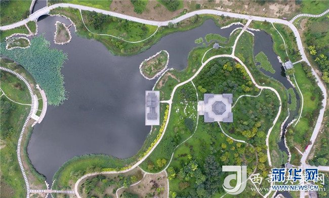 8月19日無人機(jī)拍攝的河北省河間市瀛州公園。